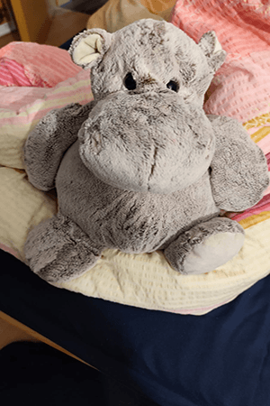 UPDATE: Das Tier kam an, es war ziemlich groß, leider nicht schwer genug, trotz 2,4 kg und es fusselte stark, sodass ich es wieder retournieren musste. Aber es hatte schon so eine beruhigende Art an sich und weil ich das wieder haben wollte, habe ich nun ein anderes Kuscheltier umgebaut. Meinen Fips. 😅Er wiegt nun 3 kg und ist voll mit Weizenkörnern in einem selbstgebastelten Kissen.